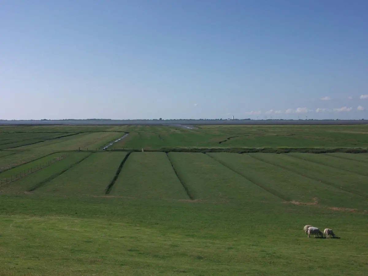 Unsere im Obergeschoss liegende 92 qm Ferienwohnung für bis zu 6 Personen liegt keine 5 Minuten Spaziergang vom Nordseedeich entfernt.